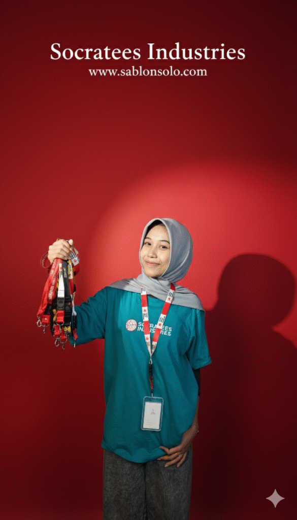 Jadikan lanyard custom sebagai bagian tak terpisahkan dari acara, seminar, atau seragam kantor Anda. Socratees Industries siap membantu Anda mewujudkan lanyard impian Anda. Dari konsultasi desain hingga proses produksi, kami pastikan setiap lanyard yang Anda pesan memiliki kualitas terbaik.